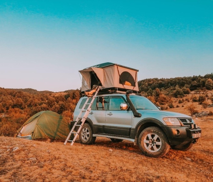 1 kapı, 2 pencere ve 1 tavan penceresi. Kapı ve yan pencerelerde çelik çubuklarla gerilmiş güneşlik vardır.